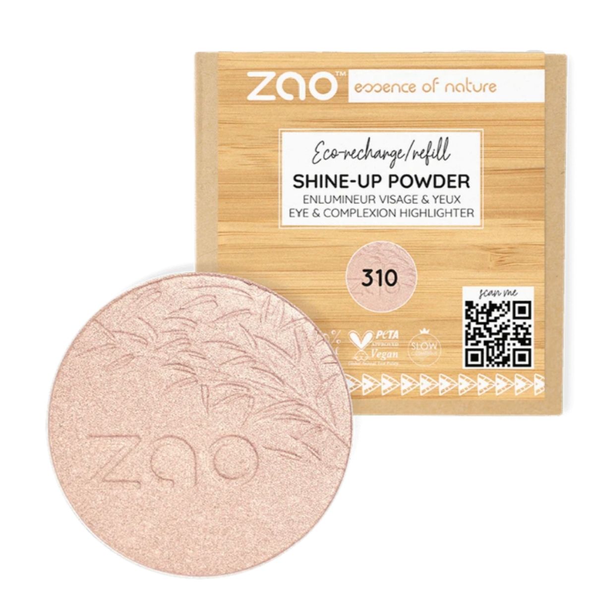El polvo Iluminador Shine Up orgánico de Zao makeup es un producto 2 en 1. Es un polvo mágico iridiscente que da brillo a los ojos y partes de la cara por su capacidad de capturar la luz. Su textura en polvo lo hace adecuado para todo tipo de pieles, incluso aquellas con tendencia grasosa y garantiza un ligero efecto de brillo.